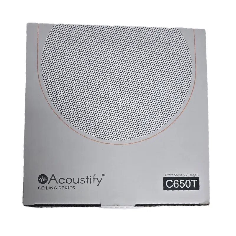 اسپیکر سقفی بدون فریم Acoustify مدل C650T نسخهی ارتقاءیافتهی مدل C650 است که با افزودن ترانس مچینگ داخلی، امکان استفاده در هر دو سیستم صوتی اهمی و ولتی را فراهم میکند.