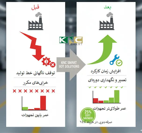 در خطوط تولید سنتی، خرابی تجهیزات معمولاً بهطور ناگهانی رخ میدهد. این توقفات نه تنها به معنی از دست دادن زمان تولید و ضربه به برنامهریزی تحویل محصول است، بلکه هزینههای سنگینی برای تعمیرات اضطراری و نیروی انسانی به همراه دارد.